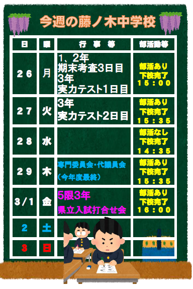 2月26日(月)からの予定