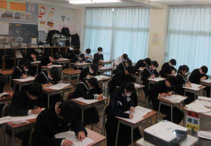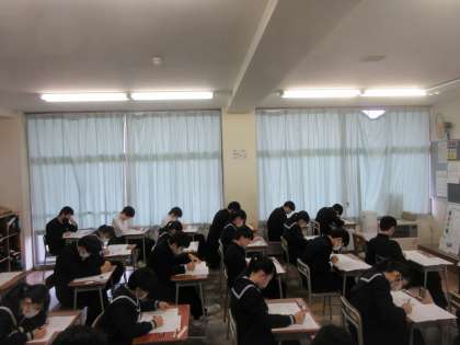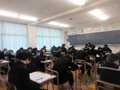 2月26日(月) 3年 第8回実力確認テスト 1日目 公開日 2024/02/26 更新日 2024/02/26 3学年 3年生の学年末考査は、5教科のみだったので先週で終了しました。 3連休明けの今日は、県立高校一般入試前最後の実力確認テストを行いました。 県立高校一般入試と同様に2日間に分けて行います。 本日、帰宅後は、明日の2教科のテスト勉強を優先して、集中して取り組んでもらいたいと思います。