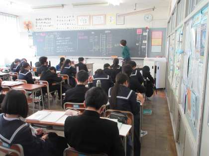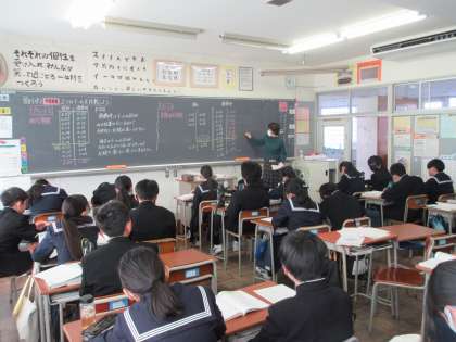 本日の2限目の授業の様子です。 教科は数学で度数分布について学習しました。