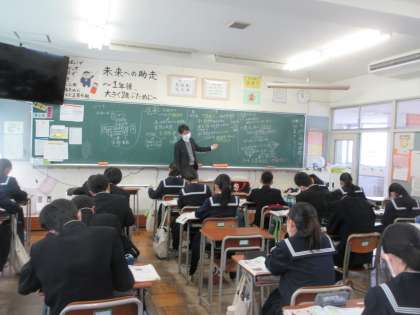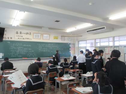 写真上段 2−3 保健体育 アルコールパッチテスト実施 写真下段 2−4 社会 テスト解説