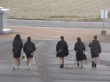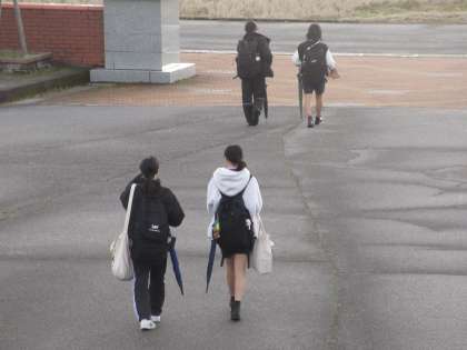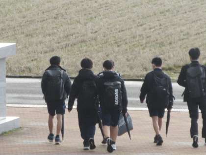 最初は曇っていたのですが、途中から強い日射しが照りつけて、下校する姿が輝いていました。
