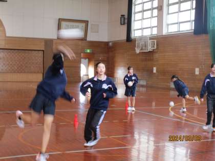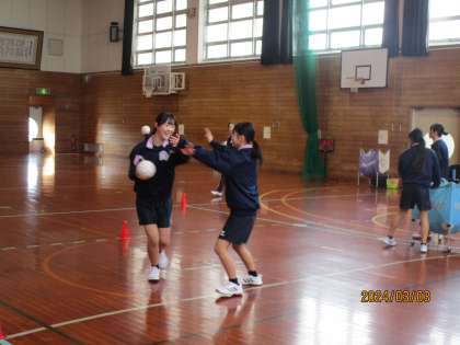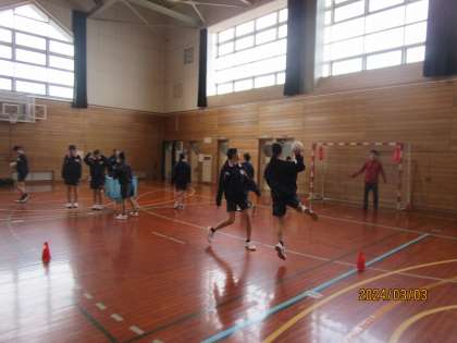 ハンドボール部は、シュートとディフェンスを組み合わせた練習をしています。1つ1つの練習を課題を意識しながら取り組んでいます。