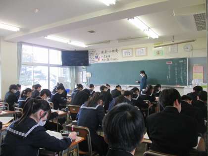 写真上段 2年3組 美術 写真下段 2年4組 国語