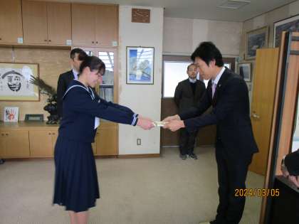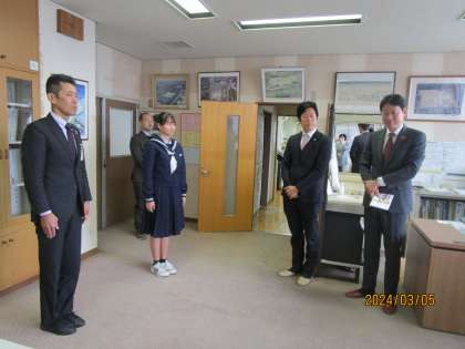 3月5日(火) 液晶モニター寄贈式 公開日 2024/03/05 更新日 2024/03/05 news 地元企業である、株式会社成友建設様より、液晶モニター1台を寄贈いただき、寄贈式を行いました。代表生徒が目録を受け取り、感謝の言葉を述べました。 寄贈いただいた液晶モニターは、授業の場面で活用させていただいており、生徒にも先生方にも「見やすい」「気軽にICTを活用でき、便利だ」等、嬉しい声が上がっています。 今後も有効に活用させていただきます。ありがとうございました!