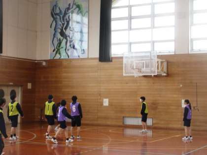 3月6日(水) 2年 授業風景 公開日 2024/03/06 更新日 2024/03/06 2学年 2年2組の保健体育の授業の様子です。 バスケットボールのまとめの段階で、ゲームを行いこれまでの学習の成果を確認しています。
