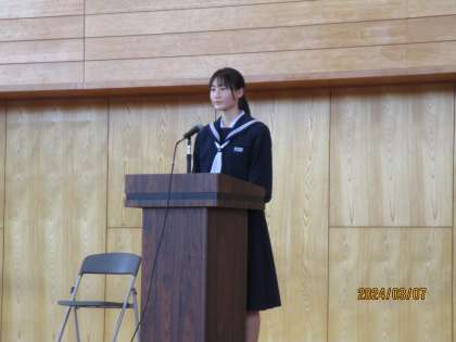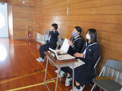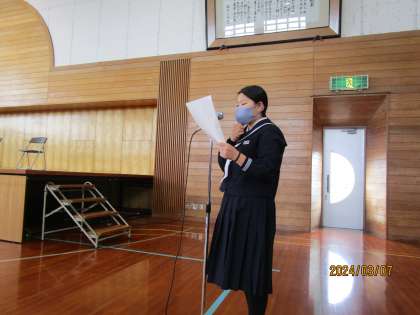 3月7日(木) 生徒会役員選挙 立会演説会 公開日 2024/03/07 更新日 2024/03/07 生徒会 本日5限、生徒会役員選挙の立会演説会を行いました。 選挙管理委員会委員長からの挨拶や、選挙方法の説明、注意等がありました。