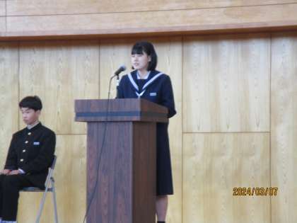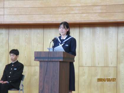 3月7日(木) 生徒会役員選挙 立会演説会 公開日 2024/03/07 更新日 2024/03/07 生徒会 生徒会長候補者、副会長候補者と応援演説者による演説を行いました。 それぞれ、藤ノ木中学校をよりよくするための公約や意気込みについて演説しました。 来年度の学校のリーダーを決める大切な選挙です。みんな真剣に話を聞いています。