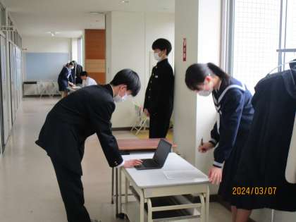 今学期より、クロームブックによる投票を行いました。静粛な選挙となるよう、選挙管理委員が見守っています。
