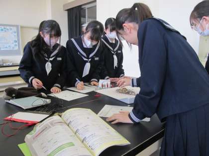 グループで話し合いながら、実験を進めていました。