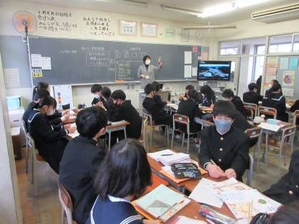 3月12日(火) 1年3組 授業風景 公開日 2024/03/12 更新日 2024/03/12 1学年 本日の3限目の授業の様子です。 教科は家庭科で「私達の生活と環境とのつながり」について学習しました。