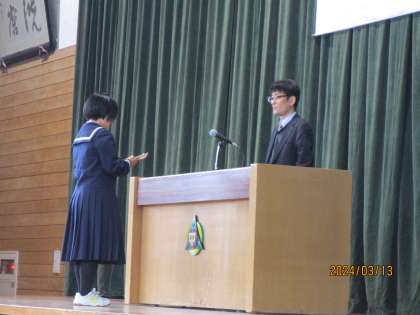 新入会員を代表して誓いの言葉を述べたあと、同窓会長様より委嘱状をいただきました。