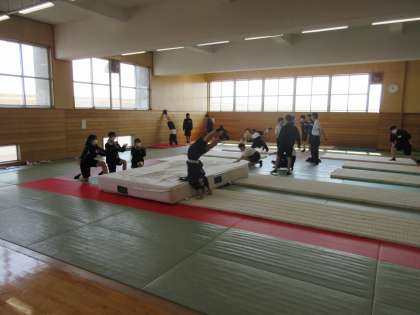 教科は保健体育でマット運動を練習しました。
