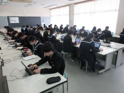 本日の3限目の授業の様子です。 教科は技術でタイピングの練習をしました。