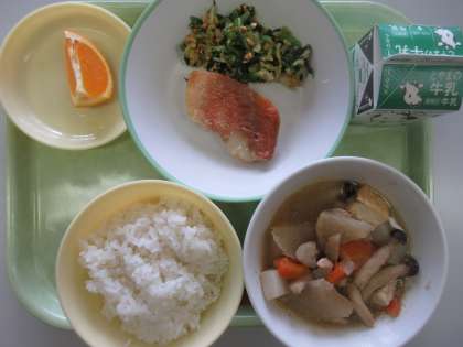 3月19日(火) 今日の給食 公開日 2024/03/19 更新日 2024/03/19 news 今日の給食のメニューは以下のとおりです。 ○ごはん ○牛乳 ○赤魚の塩焼き ○いり大豆和え ○根菜のごま煮 ○清見オレンジ 「赤魚の塩焼き」は、身がホロホロとしていてとても美味しかったです。