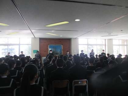 学年生徒会の生徒からの挨拶や、学年担当から、春休みの過ごし方についての話がありました。