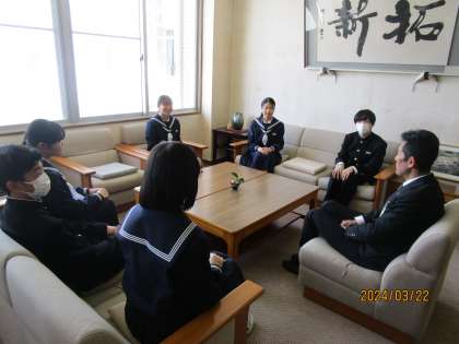 鍋田校長が転任すると知り、生徒会執行部のメンバーがお別れの挨拶にきました。