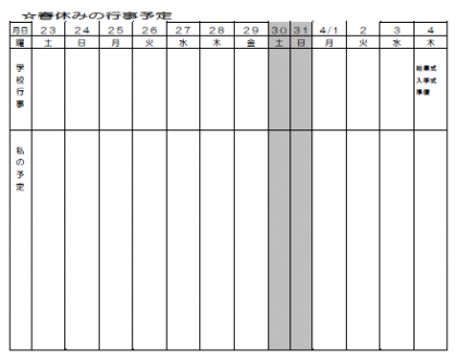 いよいよ春休みがスタートしました。春休みのしおりをもとに、しっかりと計画を立てて有意義な春休みにしましょう!