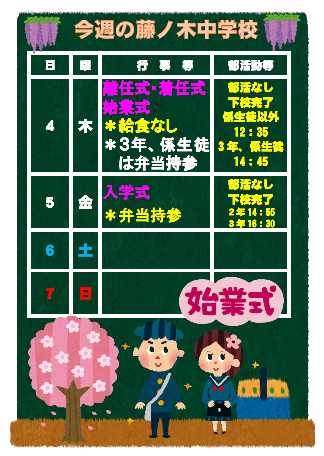 いよいよ明日から新学年がスタートしますね。みなさんが、元気に登校してくれるのを待っています!