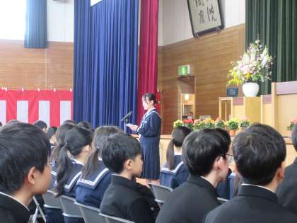 生徒会長が新入生へ、「歓迎の言葉」を伝えました。