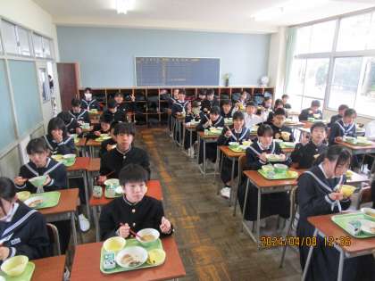 中学校初めての給食の味はいかがでしたか?クラスメイトと食べる給食は格別においしいですね!