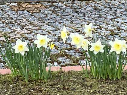 前庭には、春の花たちが咲き誇っています。桜は今が見頃です。