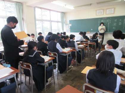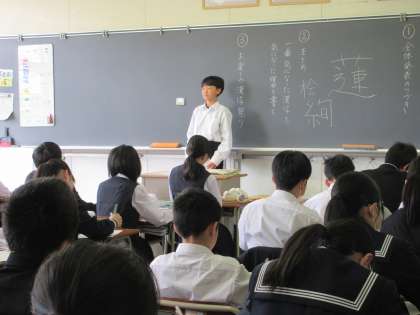 4月18日(木)1学年授業の様子 公開日 2024/04/18 更新日 2024/04/18 news 1学年の授業の様子です。 写真上段:1年2組 国語では調べた漢字についての発表のまとめを行いました。 写真中段:1年3組 理科では野外に植物を最終に行き、春の植物の観察を行いました。 写真下段:1年4組 国語で、自分の名前の漢字について、代表者が発表を行いました。