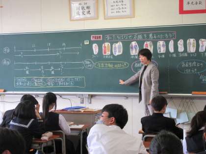 写真上段:2年3組 技術 エネルギー変換の仕組みについて学習しました。