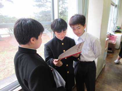 写真下段:1年2組は、数学で正負の数について問題に取り組みました。