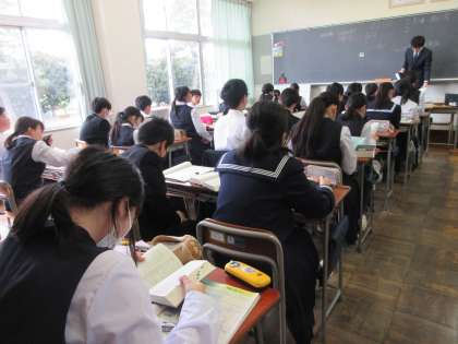 写真下段:1年4組は、英語で、英和辞典の使い方を勉強しました。