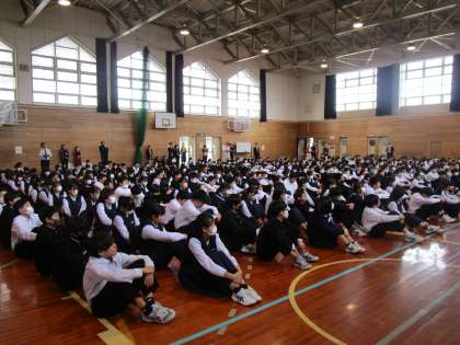 本日午後、火災を想定した避難訓練を実施しました。避難経路、避難場所での行動等、生徒も教員も意識することができた避難訓練になりました。