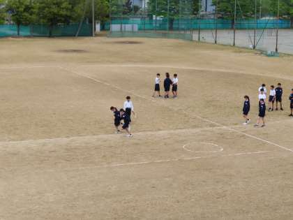 写真上段:3年1組の「保健体育」では、スポーツテストの50m走の計測をしました。