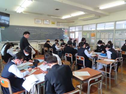 写真下段:3年2組の「数学」では、多項式の計算について学習しました。