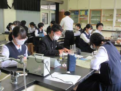 3年1組は理科の授業で、実験を行いました。様々な水溶液に電流を流し、性質を調べていたようです。