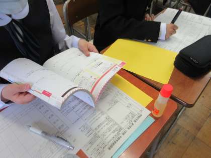 中学校に入学して初めての定期考査です。範囲を確認し、目標を決め、計画を立てています。