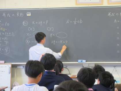 写真上:1組 数学 等式の変形について学習しました。