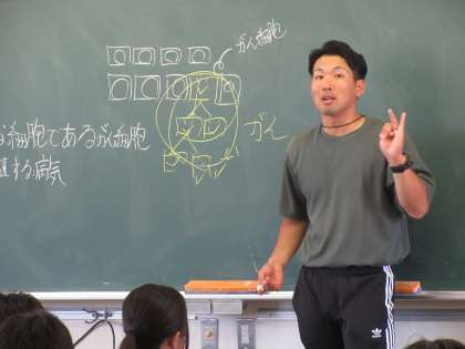 写真上:3組 保健体育 がんという病気を理解し予防できるようにすることを考えました。