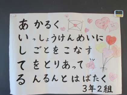 3年生の学級目標です。中学校の締めくくりの1年間、大切にしていきましょう!