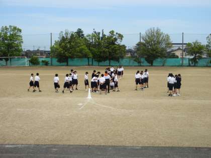 写真上:1組 保健体育 リレーの練習をしました。
