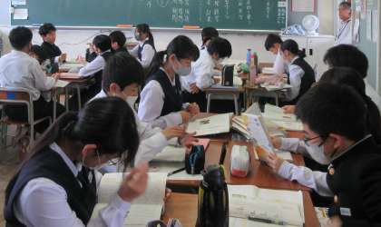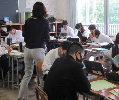 4限目の授業は、グループになっての学習です。たくさん意見が飛び交い、楽しそうです。
