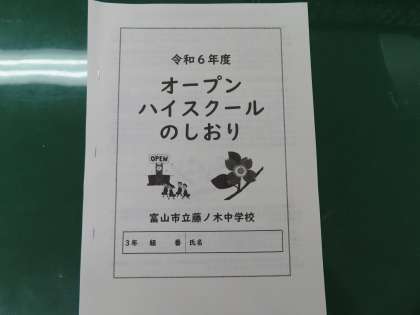 5限目 3階CSにて、6月から申込みが始まるオープンハイスクールの説明会が行われました。配付されたしおりを元に、オープンハイスクールの意義や、申込期間等の説明があり生徒一人一人は熱心に説明を聞いていました。