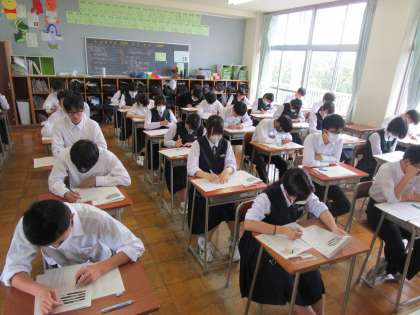 中間考査2日目です。3年生は国語と社会を実施しました。時間いっぱい真剣に取り組んでいます。