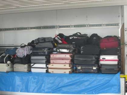 トラックに修学旅行の宿泊用の荷物をトラックに詰め込み、一足先に荷物が大阪のホテルに向かいました。