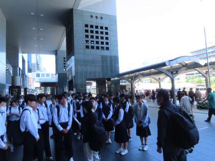 5月29日(水) 修学旅行1日目 京都駅出発 公開日 2024/05/29 更新日 2024/05/29 3学年 11時20分 全クラスが京都駅に到着し、移動を開始しました。クラス別に京都駅に集合し、班ごとに目的地を目指し出発しました。