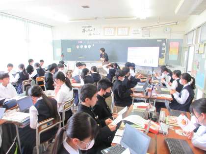 下:4組 家庭科 5大栄養素を取り入れた献立について