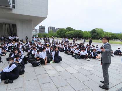 5月30日(木) 修学旅行2日目 平和記念資料館 公開日 2024/05/30 更新日 2024/05/30 3学年 平和記念資料館で原爆資料の見学をしました。直接触れる資料として溶けたガラス瓶の展示物などがありました。生徒は多くの展示物を興味深く見学していました。