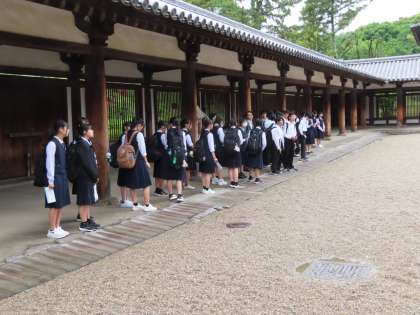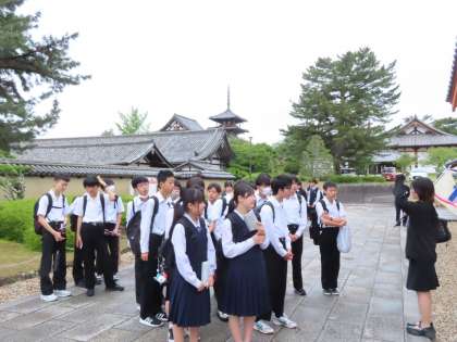 5月31日(金) 修学旅行3日目 1組クラス別学習 公開日 2024/05/31 更新日 2024/05/31 3学年 1組は、ホテルを出発し最初に法隆寺を訪問しました。ガイドさんの説明をしっかり聞き 世界遺産の歴史を学ぶことができました。