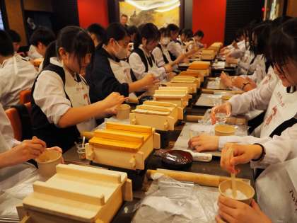 5月31日(金) 修学旅行3日目 2組クラス別学習 公開日 2024/05/31 更新日 2024/05/31 3学年 京都市内にある「八つ橋庵とししゅうやかた」にて、生八ツ橋作り体験を行いました。 初めての作業に戸惑いながらも、助け合い、楽しそうに作っていました。