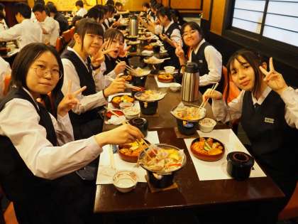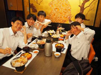 5月31日(金) 修学旅行3日目 2組クラス別学習 公開日 2024/05/31 更新日 2024/05/31 3学年 体験活動のあとは引き続き「八つ橋庵とししゅうやかた」にて、昼食をとりました。 この3日間の思い出を語り合いながら、とても美味しいご飯をいただきました。 それぞれが素敵な3日間を過ごせたようです!