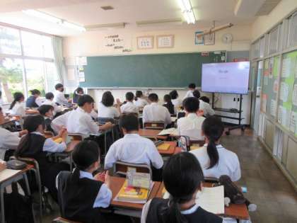 6月7日(金)1年生 授業風景 公開日 2024/06/07 更新日 2024/06/07 1学年 上:1組 家庭科 生鮮食品の選び方について学習しています。 下:2組 英語 会話について学習しています。