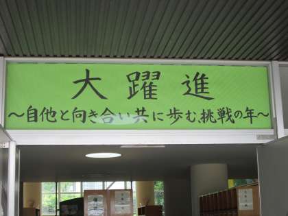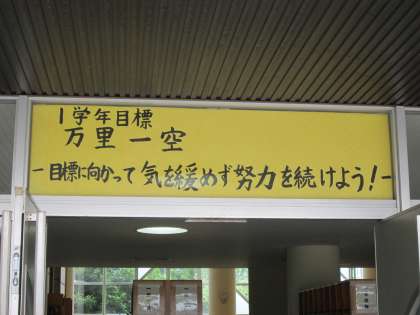 生徒玄関に学年目標が掲げられています。毎朝、学年目標を見ながら登校しています。学年目標に向けてそれぞれの学年が、頑張っています。